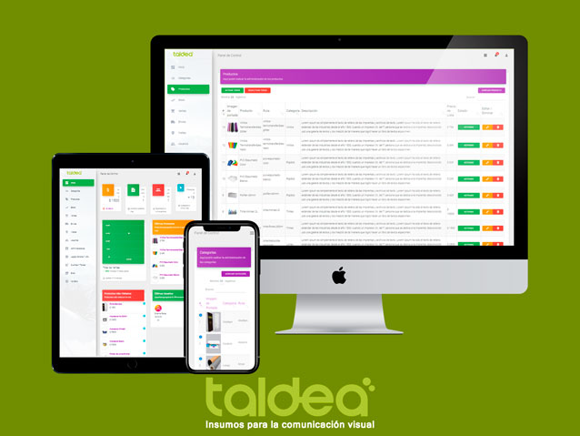 E-Commerce a medida realizado para la distribuidora de insumos para gráficas Taldea. El carrito de compras posee integración con MercadoPago para el pago. Integración con Correo Argentino para envios.